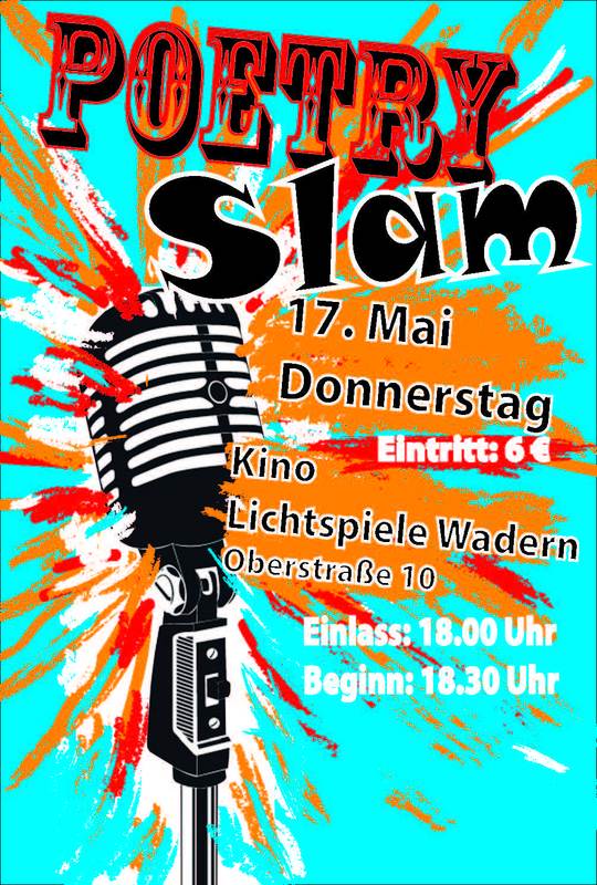 Am 17. Mai findet der vierte Waderner Poetry Slam in den Lichtspielen Wadern statt. Künstler aus der Region und ganz Deutschland kämpfen dabei wortreich und aktionsgeladen um den Sieg. Mit Texten und Performance das Publikum begeistern – ob flüstern, schreien, jaulen, keuchen, jodeln, grunzen, husten … beim Poetry Slam ist in der Performance fast alles erlaubt – ein abwechslungsreicher Abend in den Lichtspielen Wadern ist also garantiert. Unter Poetry-Slam versteht man einen Dichterwettstreit, bei dem die Künstler – auch „Slammer“ genannt – innerhalb von sieben Minuten dem Publikum einen eigenen Text darbieten. Mit Ausnahme von Hilfsmitteln wie Verkleidung oder Instrumente ist hierbei alles erlaubt um das Publikum zu begeistern. Es gilt also vor allem, den vorgetragenen Texten nur mit Sprache, Mimik und Gestik Leben einzuhauchen. Der eine Slammer macht aus seinem Text eine Comedy-Show und kein Auge bleibt trocken, ein anderer Text regt zum Nachdenken an.
